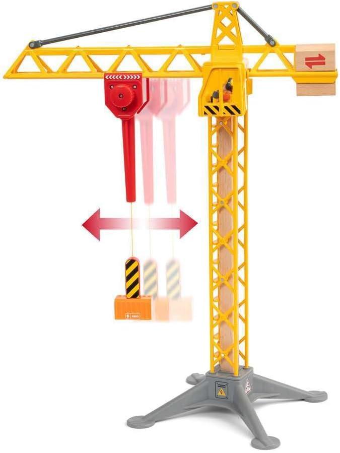 BRIO 33835 Construction Crane with Lights | Premium Wooden Toy Train Set | Ideal for Kids Age 3 and Up | Built with Sustainable Materials | Yellow(Classic)