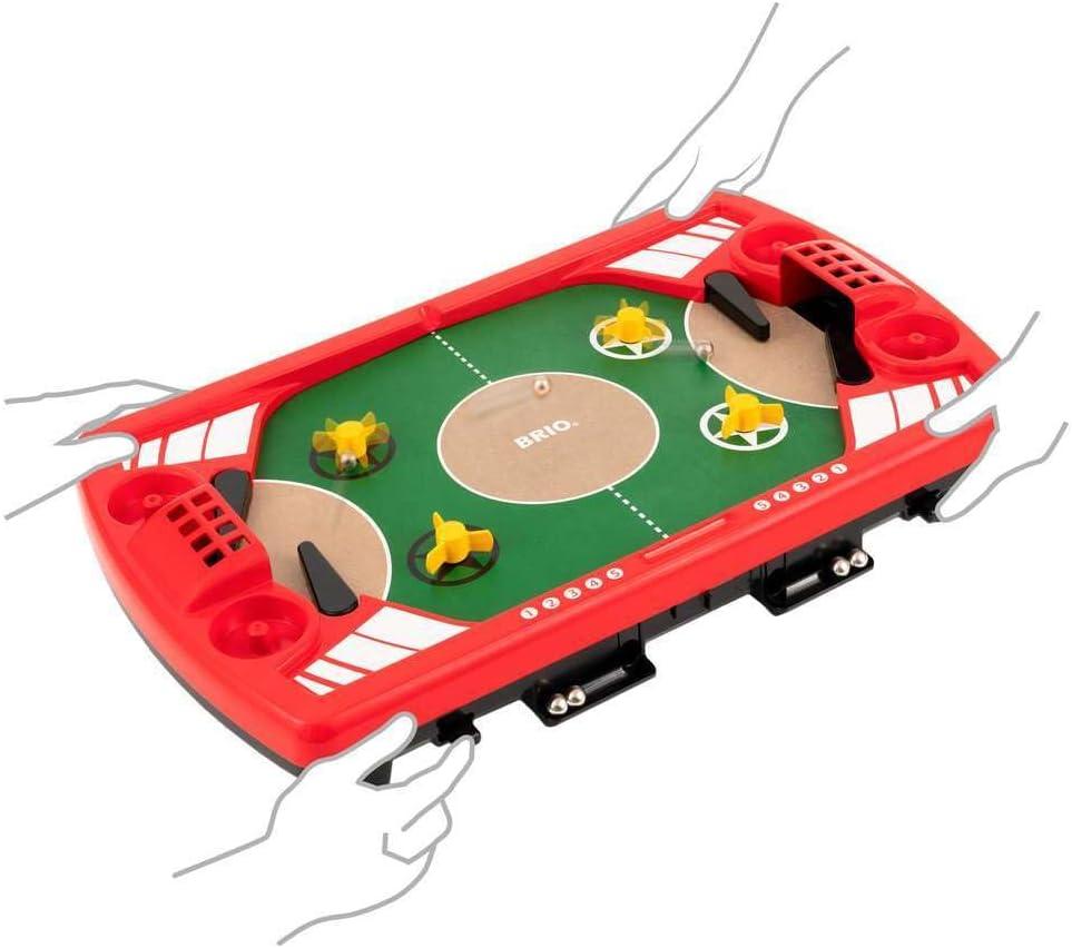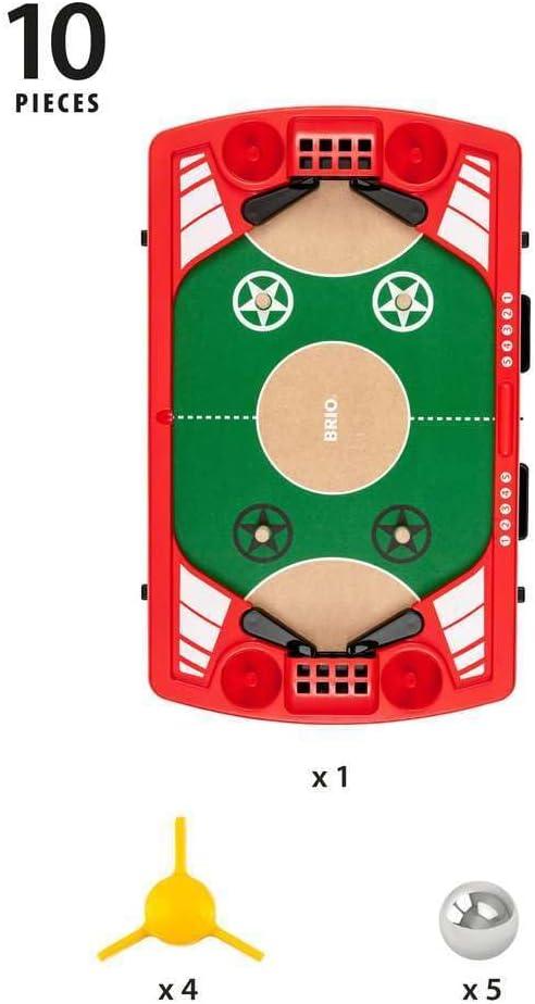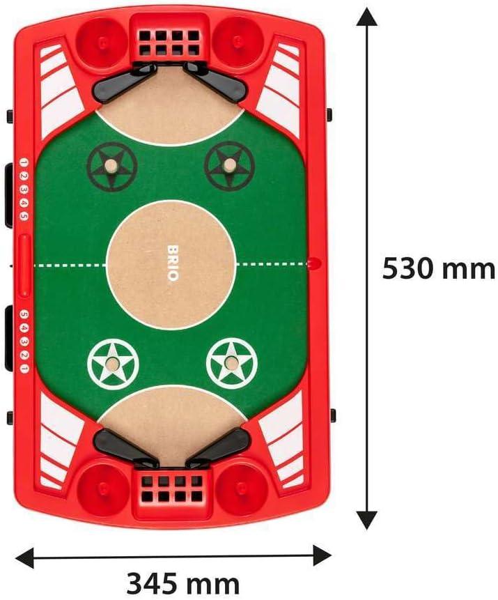The 34019 Pinball Challenge is an exciting two player game mixing beautiful design and fun features. You’ll need to be quick on the flippers to manage to score a goal against your opponent – best of five wins. When you want to increase the challenge, add the spinners that can change the metal marble speed and direction. Once the game is over, store the metal marbles in a hidden container underneath the scoreboard section to keep them safe. Crafted using FSCcertified wood, high-quality plastics and fine metal details. Suitable for ages 6 and up