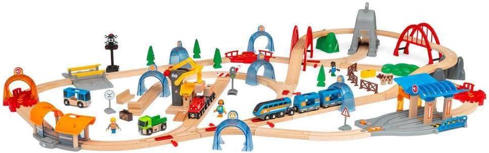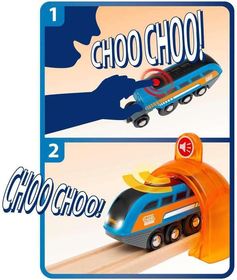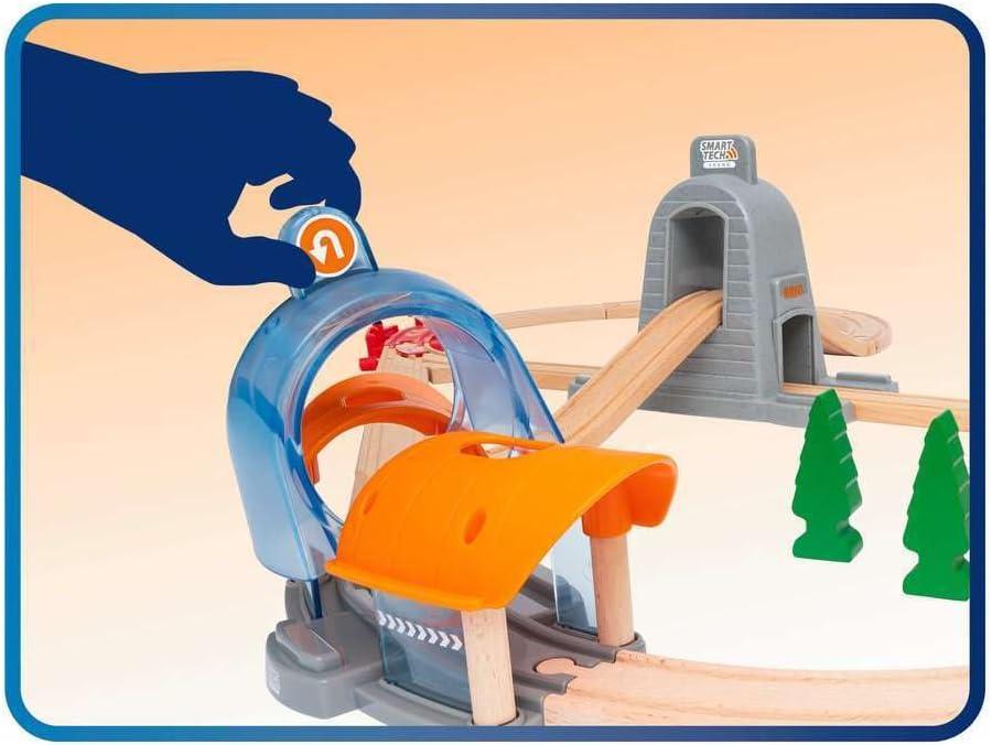Add a touch of BRIO fun to your little one's playtime with the Smart Tech Sound Action Tunnel Deluxe Set. This interactive wooden train toy is designed with a robust structure that ensures durability and long-lasting play. The train set helps your child understand and learn about their environment in a fun and engaging way, promoting cognitive development. Featuring classic BRIO magnetic couplings, the train set allows for easy hook-up, enhancing your child's play experience. The train set, rails, accessories, and destinations all feature the classic wooden train track, allowing for easy connection and expansion of your child's BRIO world. Made from FSC-certified wood from well-managed forests, this toy supports responsible forestry, helping to protect forests, wildlife, and the communities that depend on them. Give your child the gift of sustainable fun with the BRIO Smart Tech Sound Action Tunnel Deluxe Set.