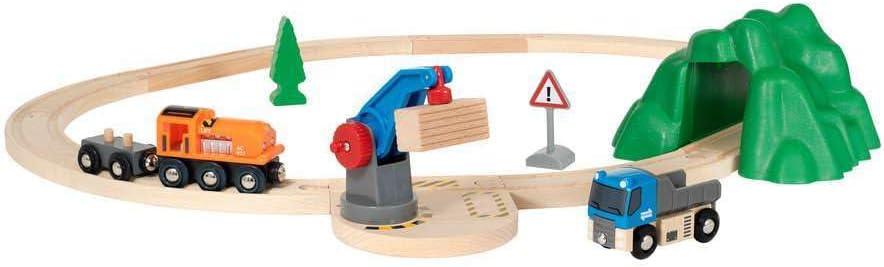 BRIO Starter Lift&Load Set Wooden Toy Train Durable | Child Safe | Encourages Creativity | Compatible with All Wooden Railway Sets | Includes Engine, Lorry, Wagon, Track and More