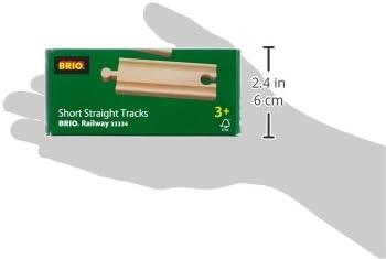 The BRIO World 33334 Short Straight Tracks set is an essential addition to your child's train toy collection. Each set includes four high-quality, short straight tracks, crafted from sustainable, FSC-certified European beech wood. These tracks are designed to seamlessly integrate with all BRIO railway toys, expanding your child's imaginative play possibilities. Beyond the fun, playing with our train set gives your child a developmental boost. It aids in honing fine motor skills and enhances spatial awareness, providing a fun way to understand and engage with their environment. Our commitment to sustainability is evident in our use of well-managed, controlled wood sources. By choosing our FSC-certified products, you're supporting responsible forestry and contributing to climate change mitigation efforts. Safety is our top priority at BRIO. We conduct over 1,000 safety tests each year to ensure our products meet all safety standards, delivering a toy set that is safe, reliable, and fun for your child.