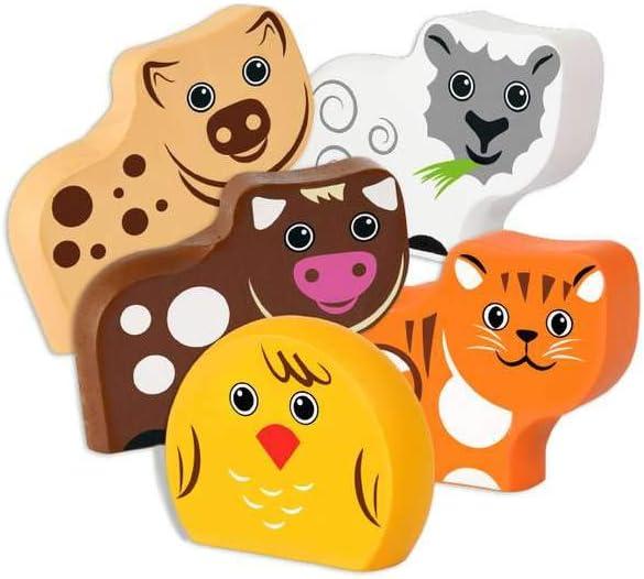 INTERACTIVE PLAY: This 12-piece wooden toy train set includes a railway engine, animal wagon, 5 wooden animal characters, and an interactive farm, providing endless fun and educational play for kids