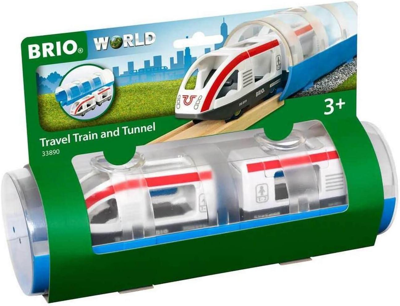 The BRIO world travel train & tunnel opens up a world of exciting new destinations. The streamlined toy train will take you anywhere your imagination cares to roam. And with room for 3 poseable figures in the engine and passenger wagon, it's time to invite your favorite BRIO friends on-board. The clever packaging around the travel train also transforms into a stylish see-through tunnel and reduces packaging waste– just place it into any BRIO world wooden railway track and Off you go. Bon voyage! Includes 1x tunnel top & base, 1x travel train, 1x carriage. The item Measures 9. 3 x 3. 1 x 3. 1 inches. Suitable for ages 3 years and up. Manufactured to BRIO high standards. Each set is fully compatible with other BRIO sets, tracks and trains. BRIO products are made from very high quality plastic. The trains, wagons, carriages, and road vehicles all feature the classic BRIO magnetic couplings allowing for easy connection to each other.