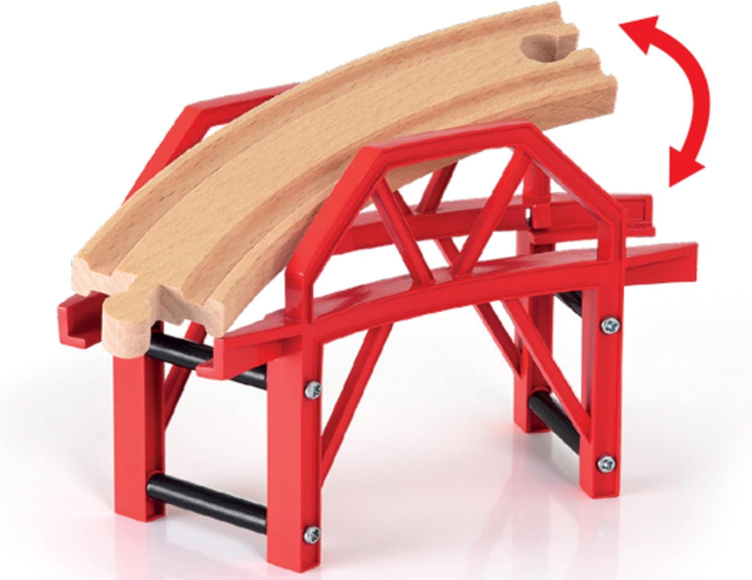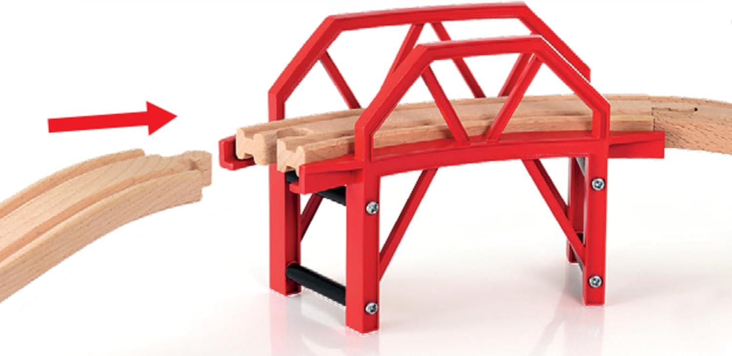 Let's be honest. A cool bridge makes a train journey more fun. Not to mention all the new layouts you can build going over and under the bridge. So here it is, a curved bridge with two elevated ascending tracks. A lovely accessory to your wooden train set